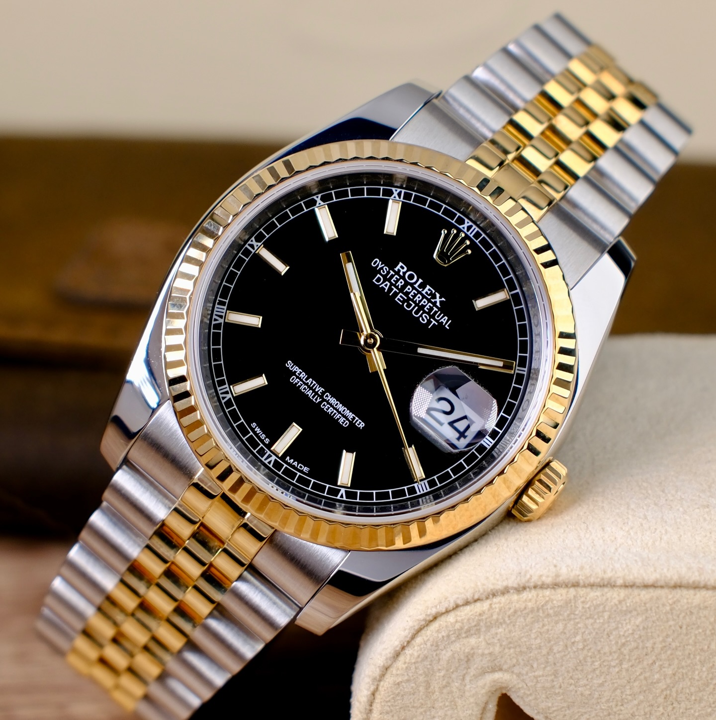[·Î·º½º]" 904L-18KÆ÷±Ý" UP!! µ¥ÀÌÁ®½ºÆ® 116231 °í±Þ½º·¯¿î 18K ¿»·Î¿ì°ñµå ÅõÅæÄÞºñ ºí·¢ ´ÙÀ̾ó ¿ÀÅä¸Åƽ ¹«ºê¸ÕÆ® rol0714 - Rolex Oyster Perpetual DATE-JUST Oyster Fluted Bezel 18K Yellow Gold Combi Black Dial Jubilee Bracelet Automatic Movement