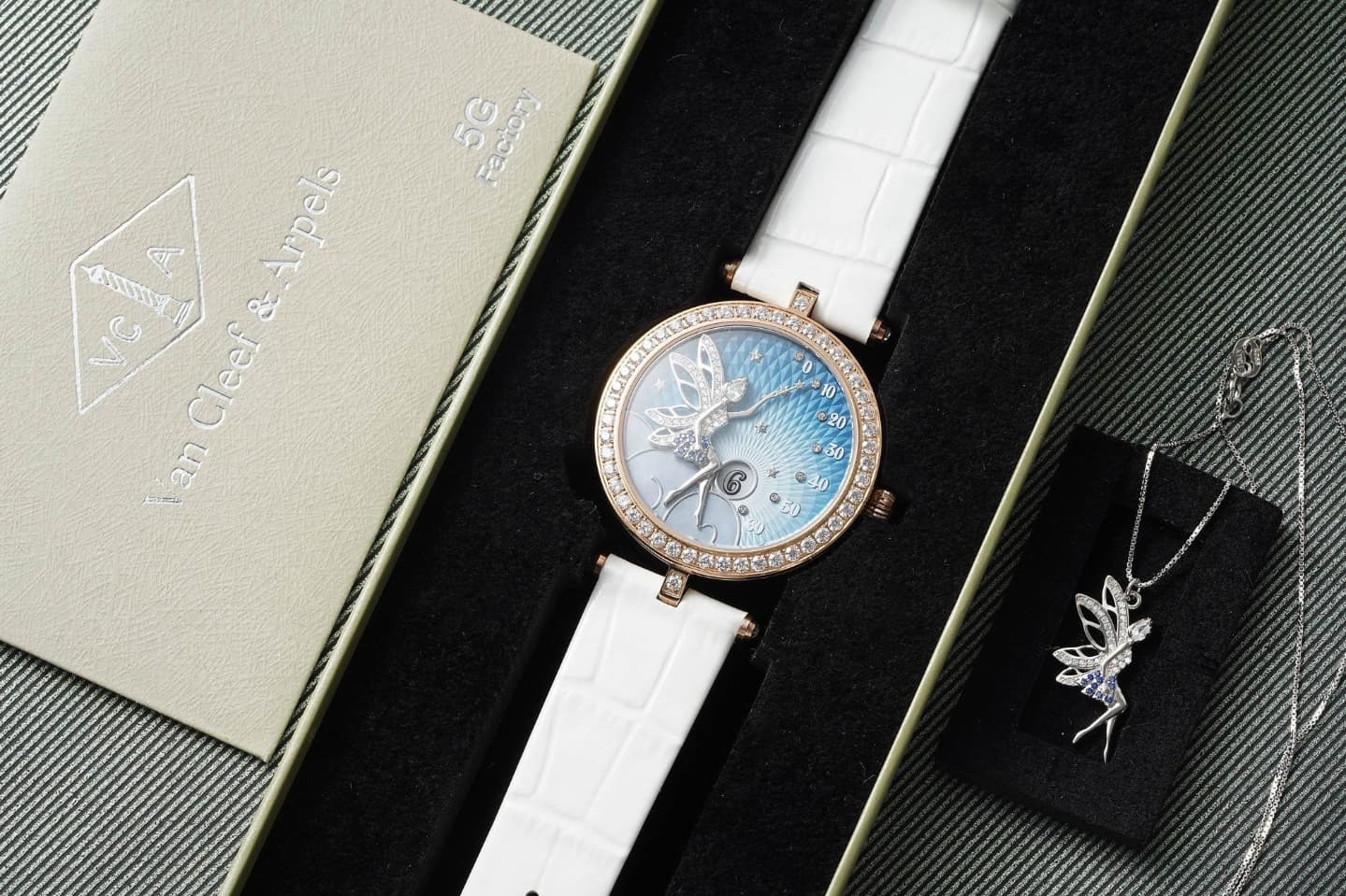 Á¦Ç°¸í [¹ÝŬ¸®ÇÁ ¾ÆÆç] Æä¾î¸® ¿©¼º¿ë ´ÙÀ̾Ƹóµå ÄõÃ÷ 38mm 18K·ÎÁî°ñµå ºí·ç´ÙÀ̾ó van0060 - VanCleef & Arpels Lady Féerie Paved Diamonds Ronda Quartz 18K Rose Gold Blue Dial