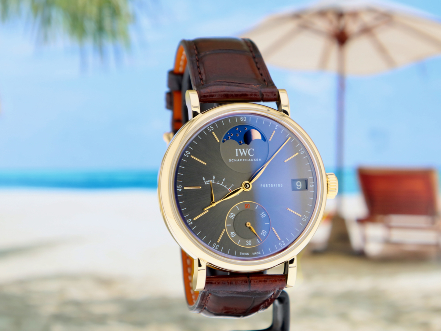 [¾ÆÀÌ´õºíÀ¯¾¾] Æ÷¸£ÅäÇÇ³ë ¹®ÆäÀÌÁî ¿ÀÅä¸Åƽ 45mm ³²¼º¿ë½Ã°è 18K ¿»·ç°ñµå °¡Á×ÁÙ ±×·¹ÀÌ´ÙÀ̾ó iwc0559 - IWC Portofino Hand-Wound Moon Phase 150 Year Automatic 45mm Mens 18K Yellow Gold Grey Dial